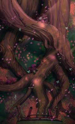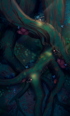 A bright blue bulb appears out of nowhere, and somehow the sight of it calms you. The light slips out through the open window. “Strange…” you mumble. You pull on shoes and a coat, grab a lantern, and follow it into the night. It leads you through patches of grass and into a dense forest before vanishing.