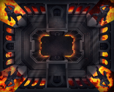 The stone platform, dangling on top of scorching hot lava, was all that stood between inevitable demise and keeping alive. Beyond the crater on all sides are towering brick walls that reach the heights. Numerous rows of seats, with on them guards against different prison sections, VIPs from far-off places, and the warden in his particular section, look down at the prisoners as they clash bare-handed for survival.