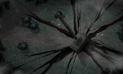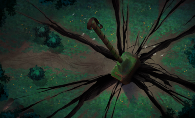 The pilgrimage across the Northern Land of Giants continues into the far and tall hilltops! A massive, rusty hammer had bludgeoned through the earth, creating deep crevices. Judging by the moss encrusting the hammer, it’s been here for decades.