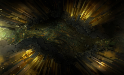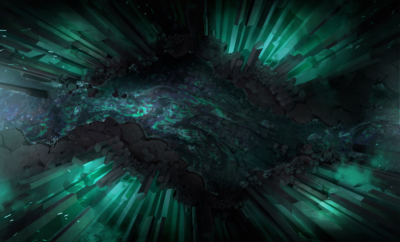 Green hues, lit from the surrounding luminescent pillars, light up the setting ever so slightly. Chains hang far above and make a repetitive, clattering noise, as if on beat. The atmosphere feels heavy, as if you’re being drowned by the river beneath your small, traveler’s boat, and lured into a den of death and misery.