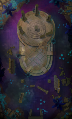 Shallow water surrounds the relics of an ancient time. It is here that they prayed to the one with nine eyes; a supposed existence beyond the realms of our understanding. In exchange for offering flesh and blood, they were given prosperity and divine protection.
